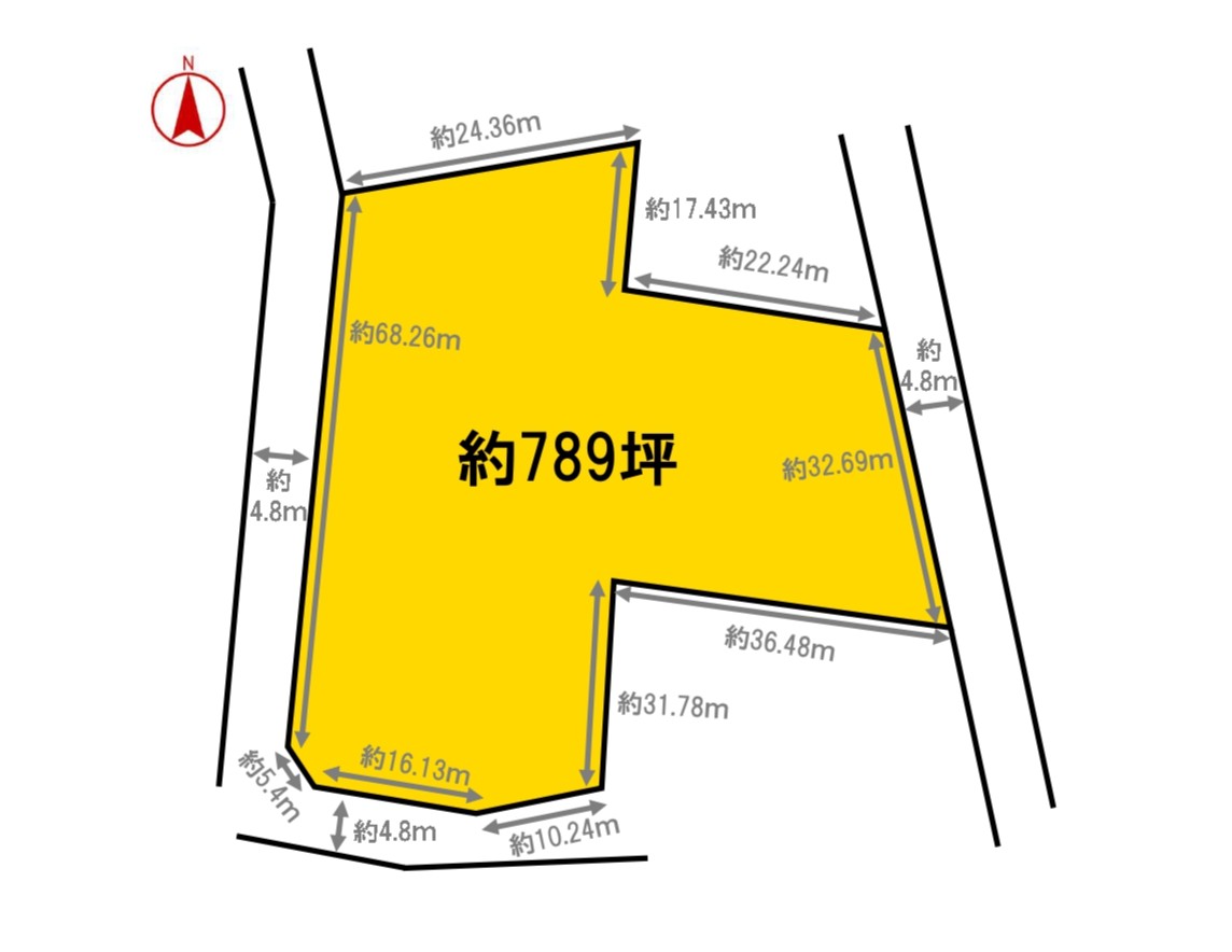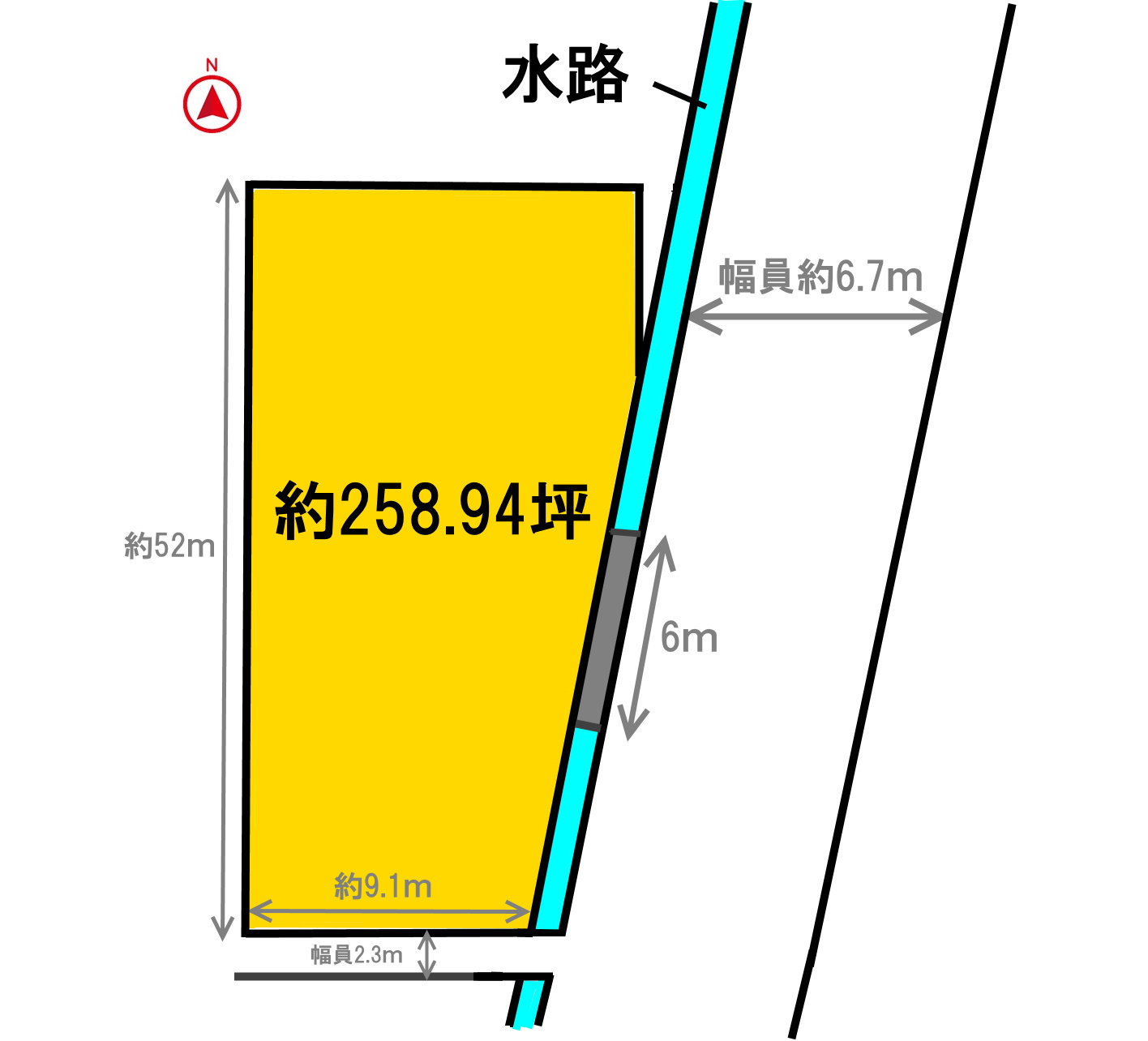 前面幅員8m以上、間口が23.20mと広く使用しやすい形です。大型トラックや観光バスの進入が可能です。