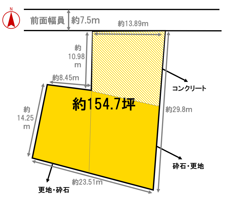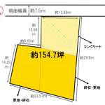 前面幅員8m以上、間口が23.20mと広く使用しやすい形です。大型トラックや観光バスの進入が可能です。