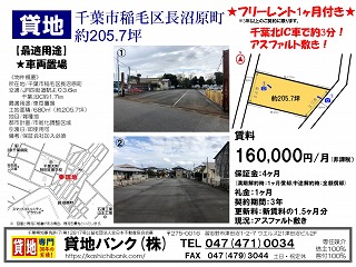 フリーレント1ケ月付き!! 千葉北インター車で約3分! アスファルト敷き! 即使用可! 前面幅員約4m 車両置場に最適です。 保証会社加入必須