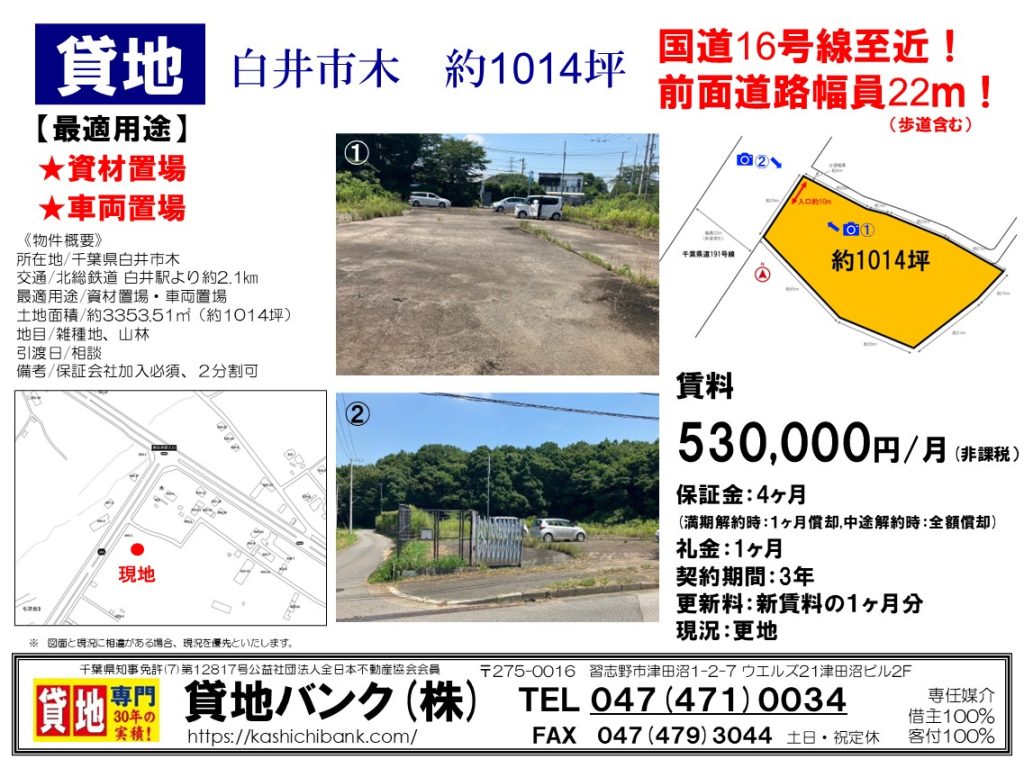 | 設備・条件 | 砕石敷き 幅員4m以上 幅員6.5m以上 保証会社加入必須、2分割可 | ||