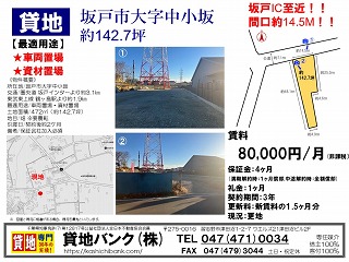 圏央道 坂戸インター至近!!※要農転許可必要です。 資材置場、車両置場に最適です。 間口広い約14.5m。