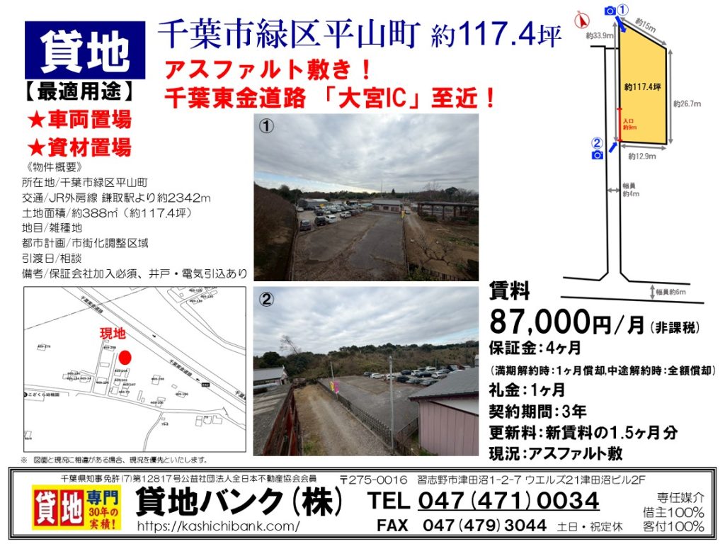 千葉市緑区平山町 約117.4坪 車両置場、資材置場【物件番号:0290】